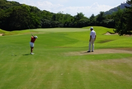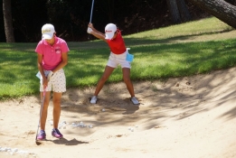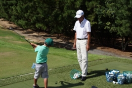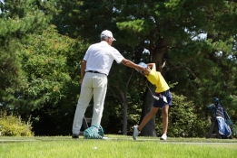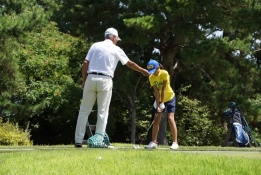 多数のジュニアゴルファーが参加され、当財団の理事でもある青木功プロをはじめ、プロゴルファーによるスイングレッスン、ショットレッスン、パターレッスン、ラウンドレッスンなど、熱心な指導が行われました。