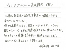2022年度「個人助成金支給者」から当財団宛へ多数の「お礼文」を頂きました。